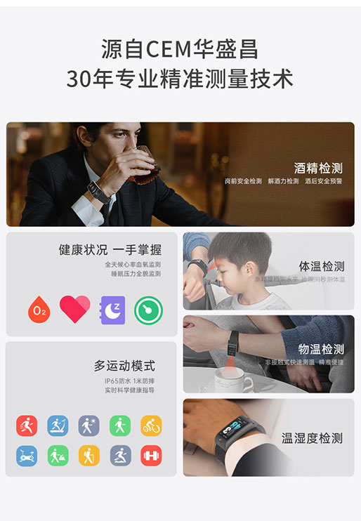 CEM路卡智能專業(yè)酒精檢測手表體溫檢測運(yùn)動(dòng)健康監(jiān)測物溫環(huán)境溫濕度M90X 時(shí)尚版本